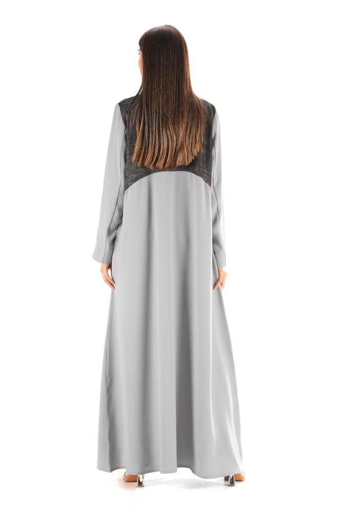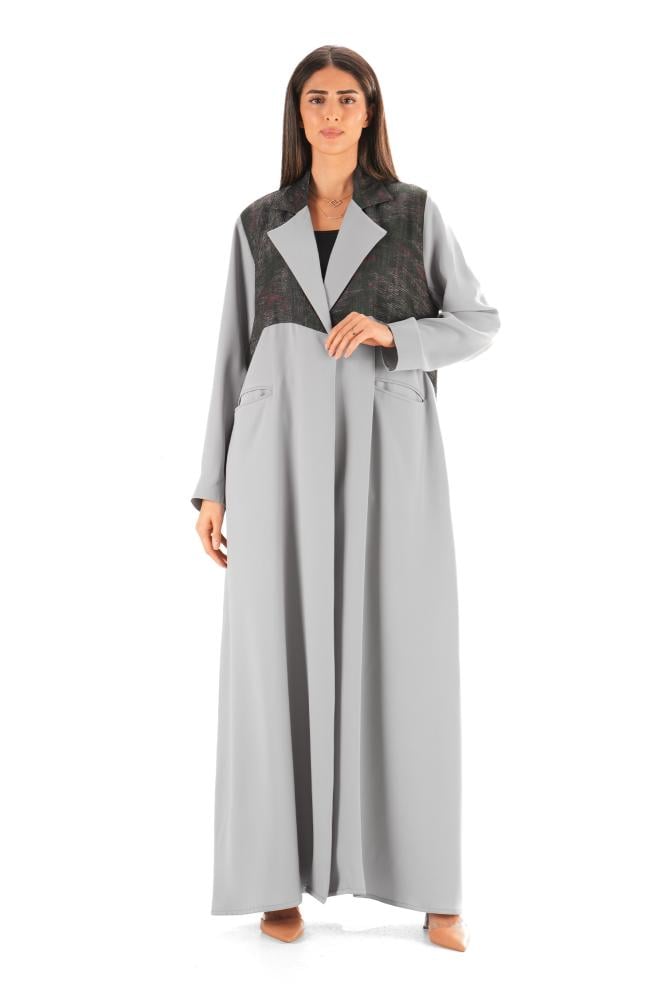 وصف المنتج: عباية بليزر رمادي بقماش كريب سيراميك، تصميمها كلوش يمنحك حركة سلسة وأناقة متجددة ، مع ياقة طولية وجيوب امامية كما اضيفت خامة مختلفة من امام العباية تضيف لمسة مميزة ، مثالية للإطلالات اليومية وتمنحك أناقة راقية بدون أي تكلف لتظهري بإطلالة أنثوية جذابة ومريحة في كل مناسبة