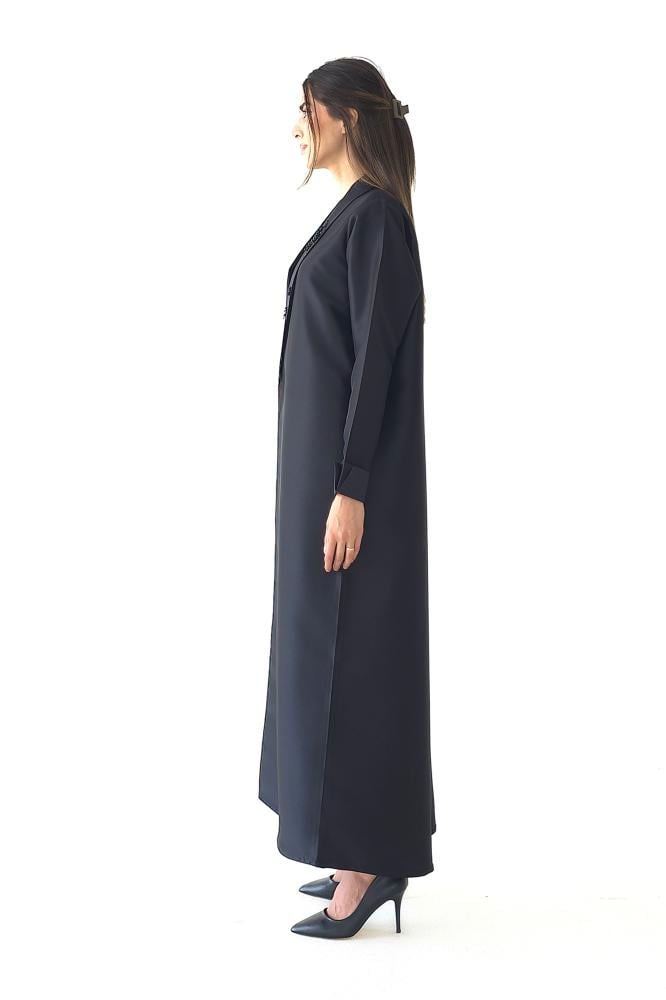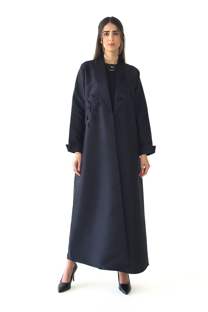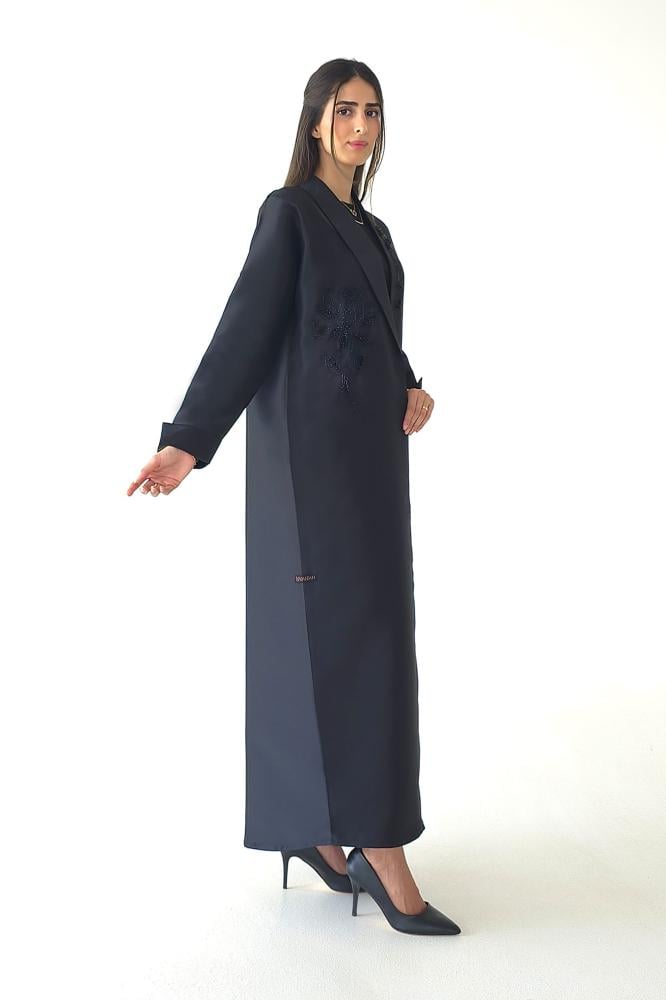 وصف المنتج : عباية بليزر سوداء فاخرة بقماش التفته، صممت بياقة طولية واكمام رسمية، طرزت ايضا بتطريز يدوي بالخرز والخيوط في جانب واحد من العباية وجهة واحدة من الياقة مما جعلها مريحة وانيقة في نفس الوقت وملفتة للأنظار ..