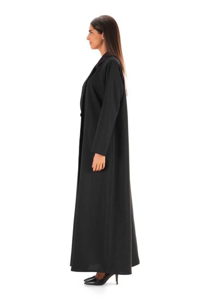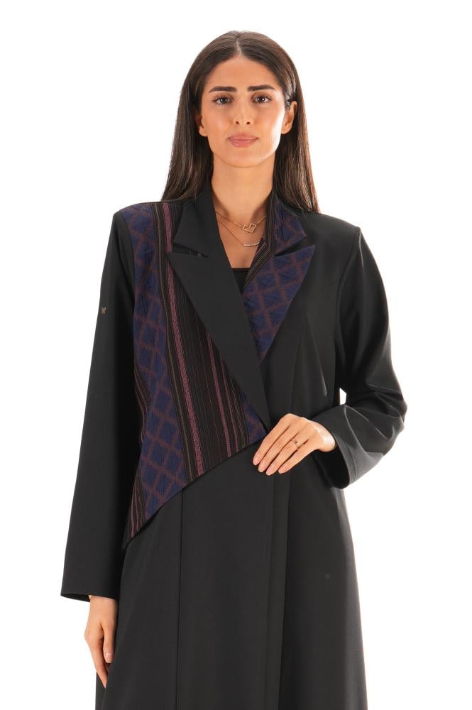وصف المنتج: عباية بليزر بقماش كريب انجليزي برو ، تمتاز بقصة ياقة رسمية طولية كما صممت بطريقة مميزة ورائعة مع تدخيلة من قماش الجاكار ذات النقوش الموزعه في جانب واحد من العباية مع الجانب الاخر في الياقة ، تعزز إطلالتك بلمسة فريدة ورائعة ..