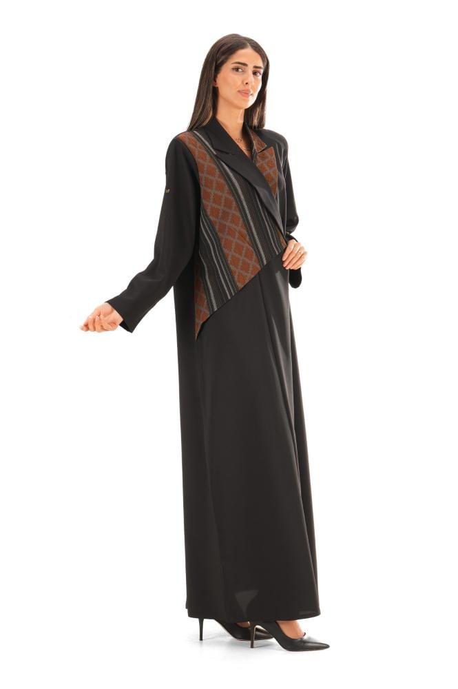 وصف المنتج: عباية بليزر بقماش كريب انجليزي برو ، تمتاز بقصة ياقة رسمية طولية كما صممت بطريقة مميزة ورائعة مع تدخيلة من قماش الجاكار ذات النقوش الموزعه في جانب واحد من العباية مع الجانب الاخر في الياقة ، تعزز إطلالتك بلمسة فريدة ورائعة ..
