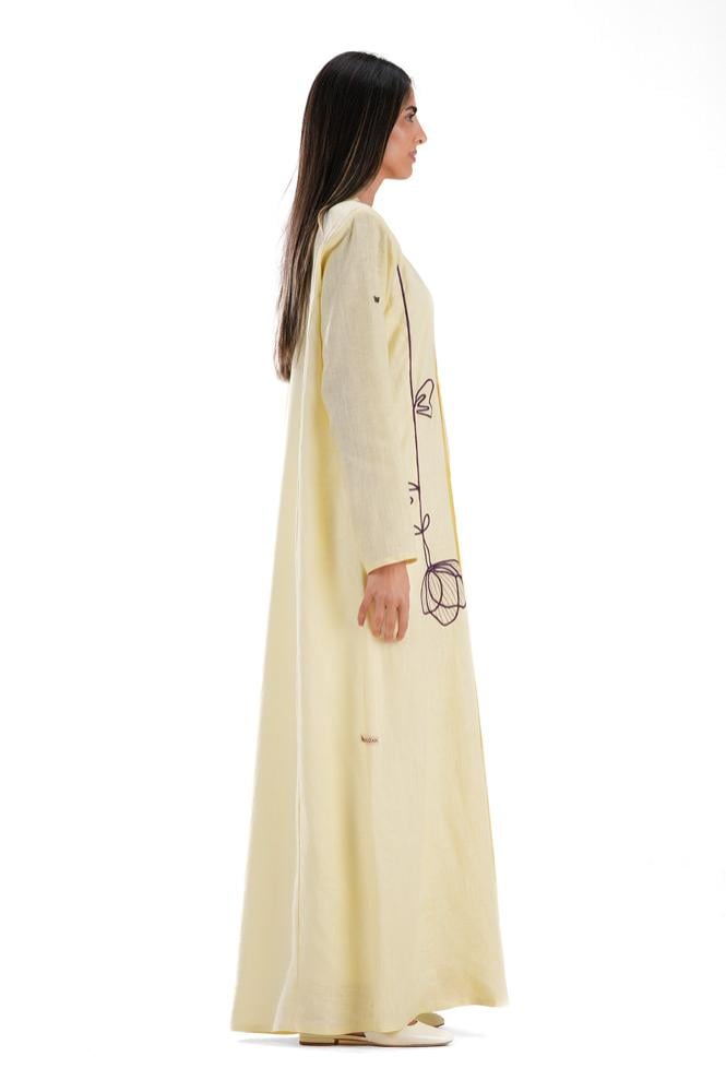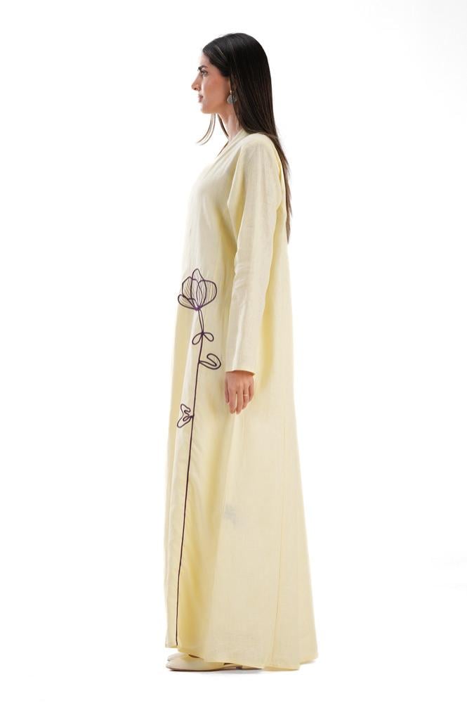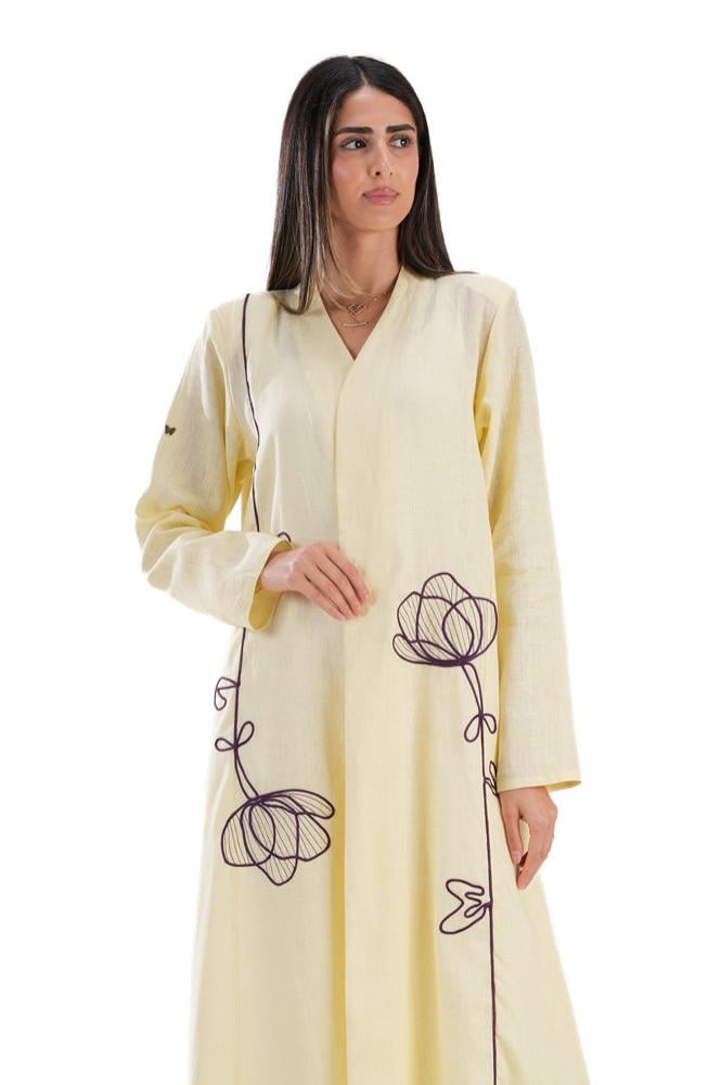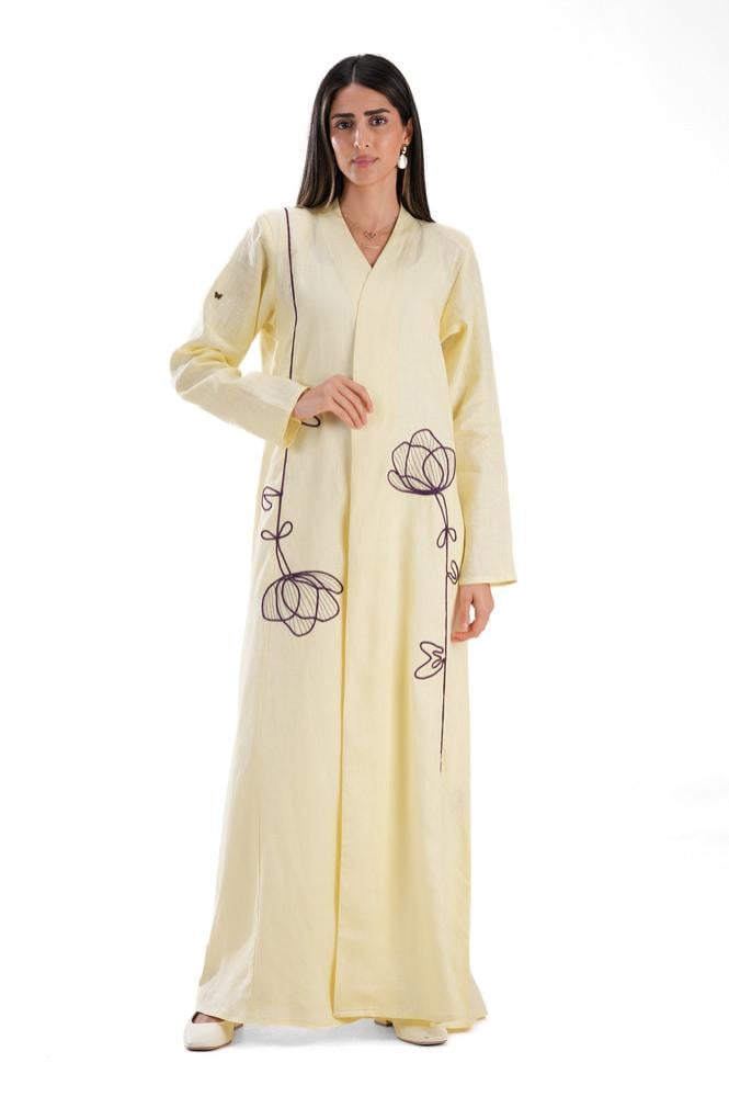 وصف المنتج: عباية بليزر صفراء صيفية بقماش اللينن ، تمتاز العباية بتطريز من الخيوط على شكل ورد في جانبي العباية بأنامل منمقة بالفخامة تحكي أسلوب معاصر ينبض بالجمال مع وجود كتافات على الاكتاف أضافت لها مظهرًا أكثر تماسكًا وهيبة، مع لمسات تصميمية راقية توازن بين العملية والأناقة، لتمنح إطلالة واثقة ومتحضرة تناسب مختلف المناسبات ..