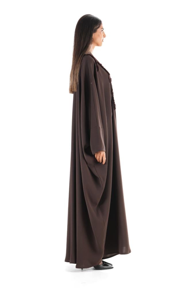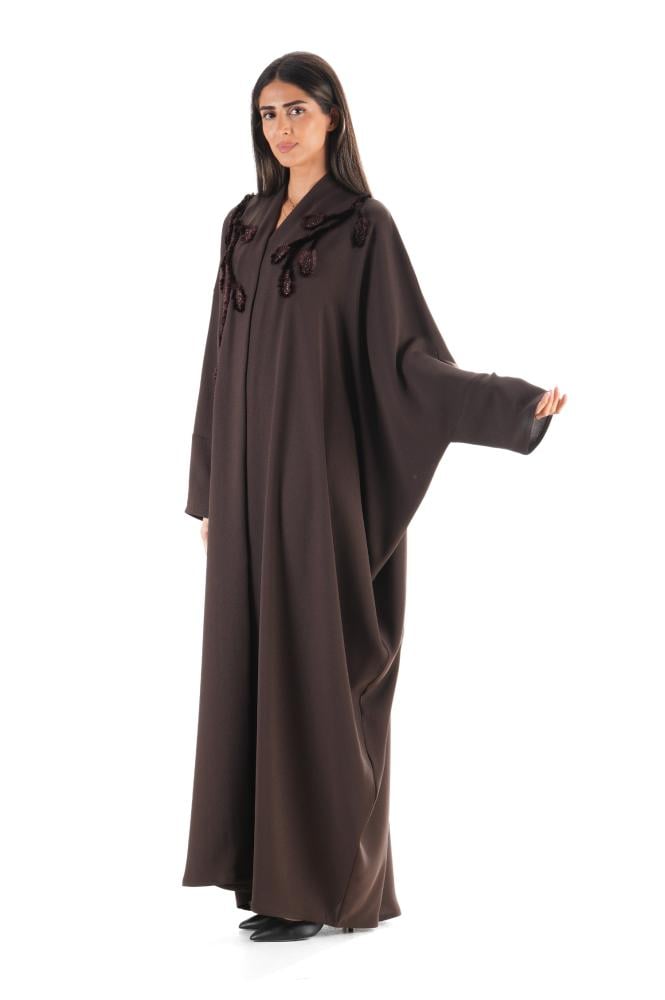 وصف المنتج: عباية بنية بخامة الكريب اللامع بقصة بشت ، تجمع بين الأناقة والدفء بتفاصيل تطريز فروع متقنة على الصدر والكتفين، تضيف لمسة فنية راقية مع حرية الحركة وأناقة لا مثيل لها ، مثالية لأجواء الخريف ونسمات الشتاء الباردة ..