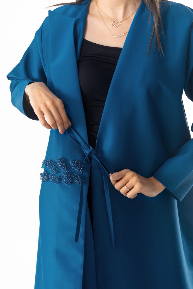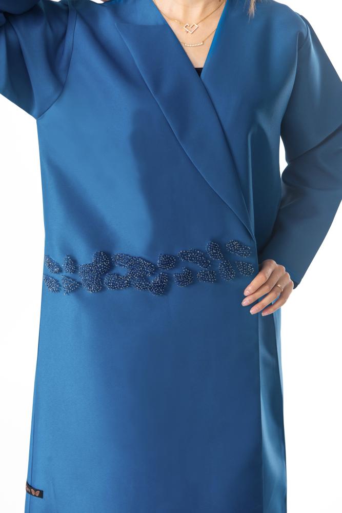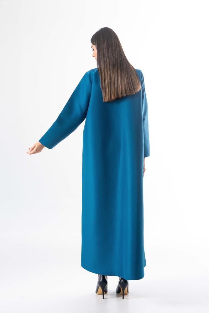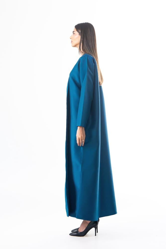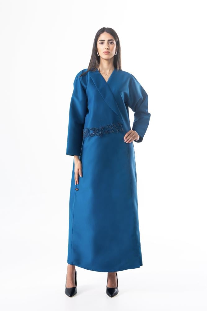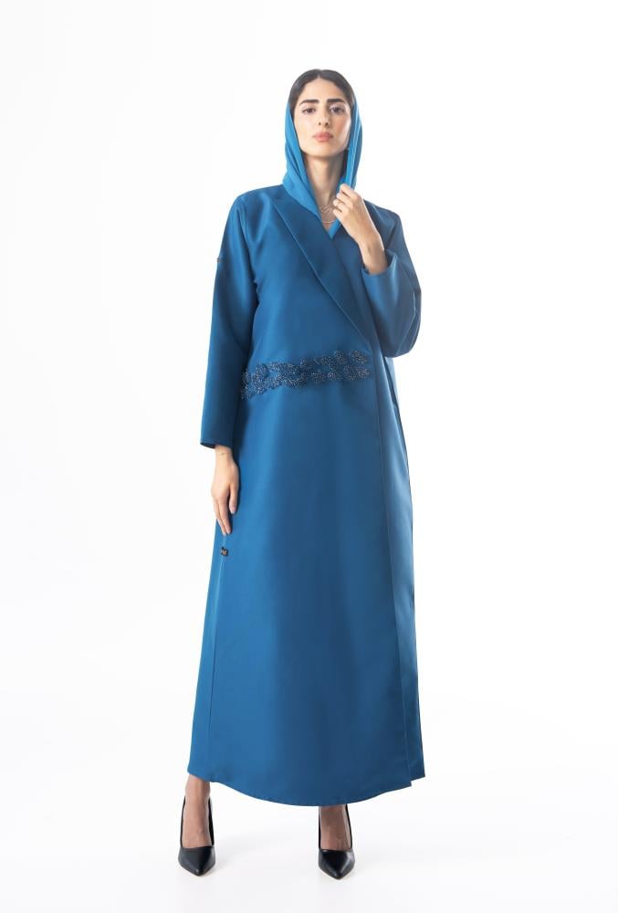 وصف المنتج : عباية تركواز فاخرة بقماش التفته ، صممت بياقة في جهة واحدة كما طرزت ايضا بتطريز يدوي بالخرز في نفس جانب الياقة ، مع امكانية ربطها من الداخل برباط مخفي تُضفي عليك مظهرًا ملفتًا وجميلًا ..