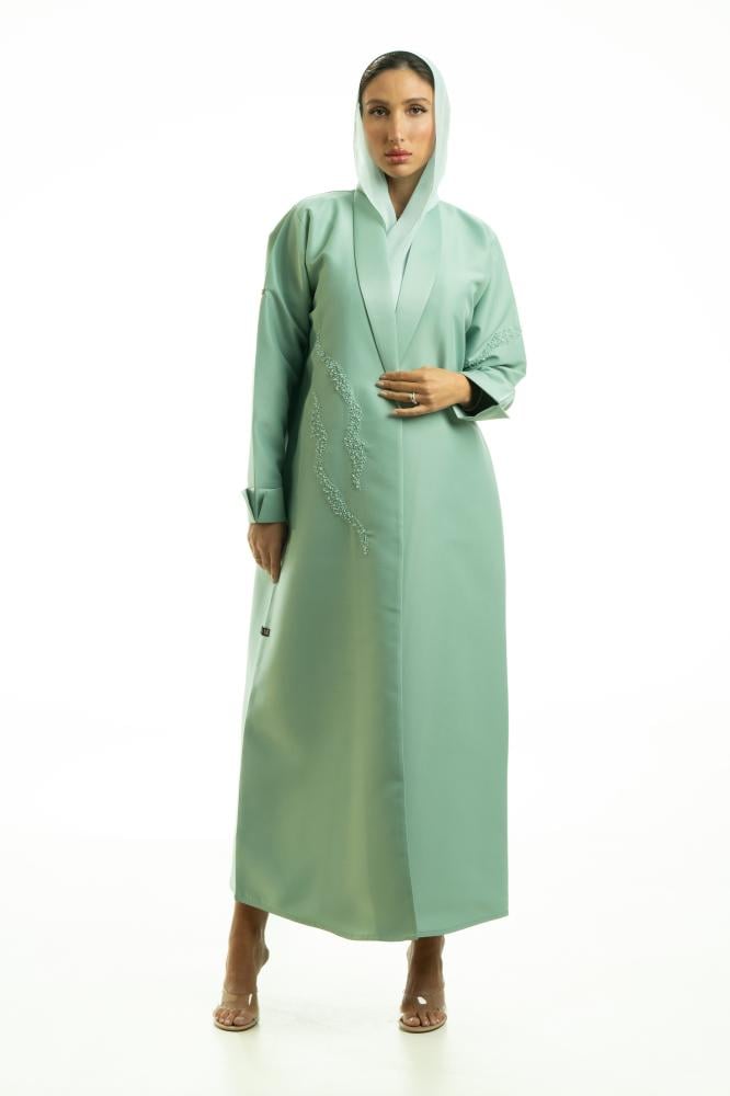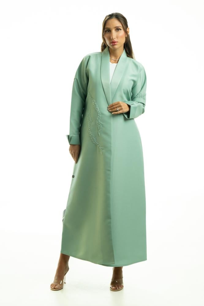 وصف المنتج : عباية تيفني فاخرة بقماش التفته من كولكشن عبايات ملكة كابلي ، صممت بياقة واكمام رسمية، طرزت ايضا بتطريز يدوي بالخرز في جانب واحد من العباية وكم واحد مما جعلها انيقة وملفتة في نفس الوقت ..
