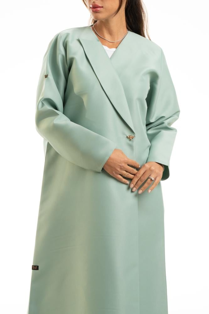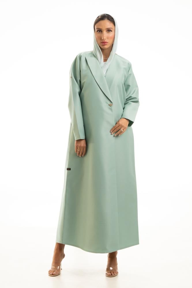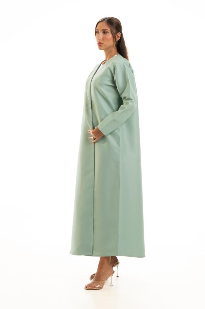 وصف المنتج: عباية تيفني بقماش التفته ، صممت بطريقة عملية تربط من الداخل برباط مخفي ، كما اضيف لها لمسات من اكسسوار مثبت ذهبية اللون