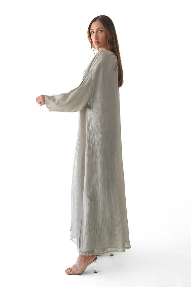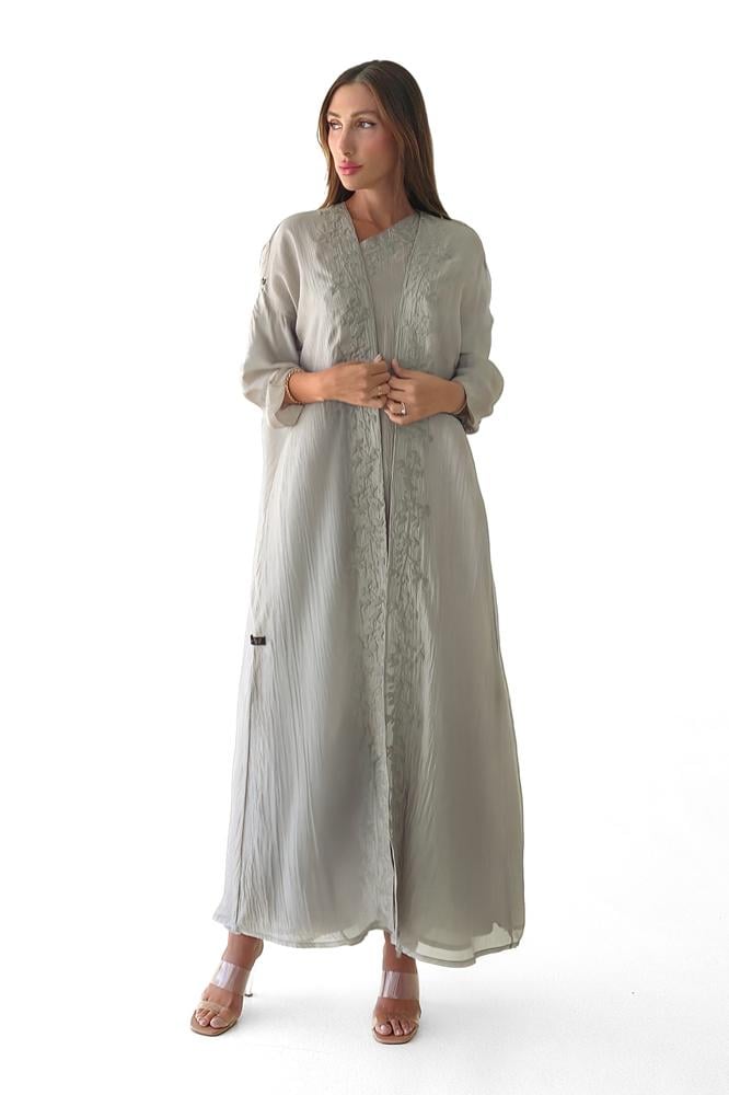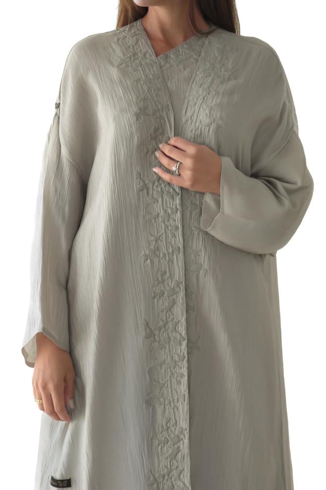 وصف المنتج: عباية زيتي مع فستان من كولكشن عبايات عالية خليل بقماش الشيفون الصيفي الذي يمتاز بخفته ، تمتاز العباية من الامام بنقش فريد بارز بقصات ليزرية على شكل نقشات وكذلك الفستان من الامام بحيث يحتفظ بالأناقة في جميع الأوقات ..