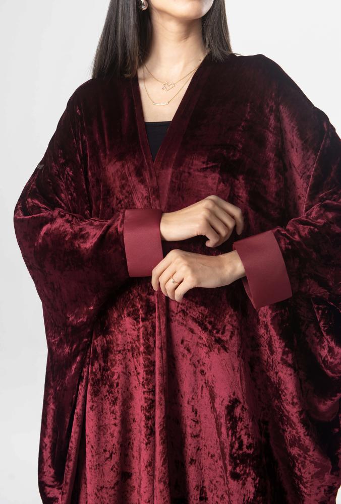 وصف القماش: نسيج فاخر وأنيق يتميز بسطحه الناعم واللامع الذي يمنح العباية مظهرًا أنيقًا وراقيًا ، يعتبر خيارًا شائعًا في فصل الشتاء نظرًا لقدرته على الاحتفاظ بالحرارة وتوفير الدفء كما يبقى محافظاً على جاذبيته ومظهرهِ الرائع على المدى الطويل، ممَّا يجعله مناسباً للاستخدام اليومي ..