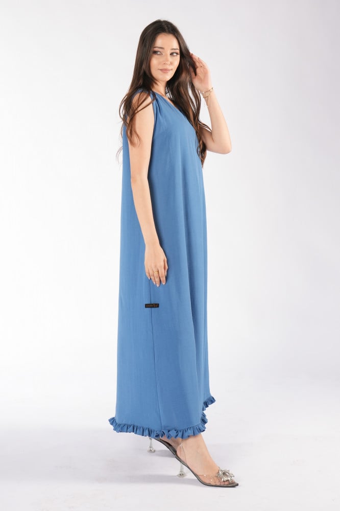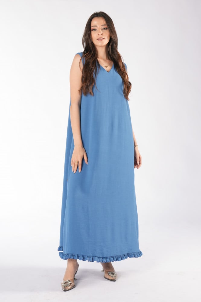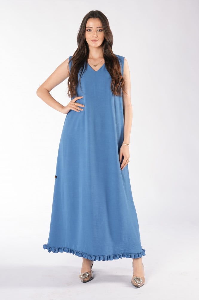 وصف المنتج: فستان كت بقماش الكريب المغسول ، مقفل من الامام