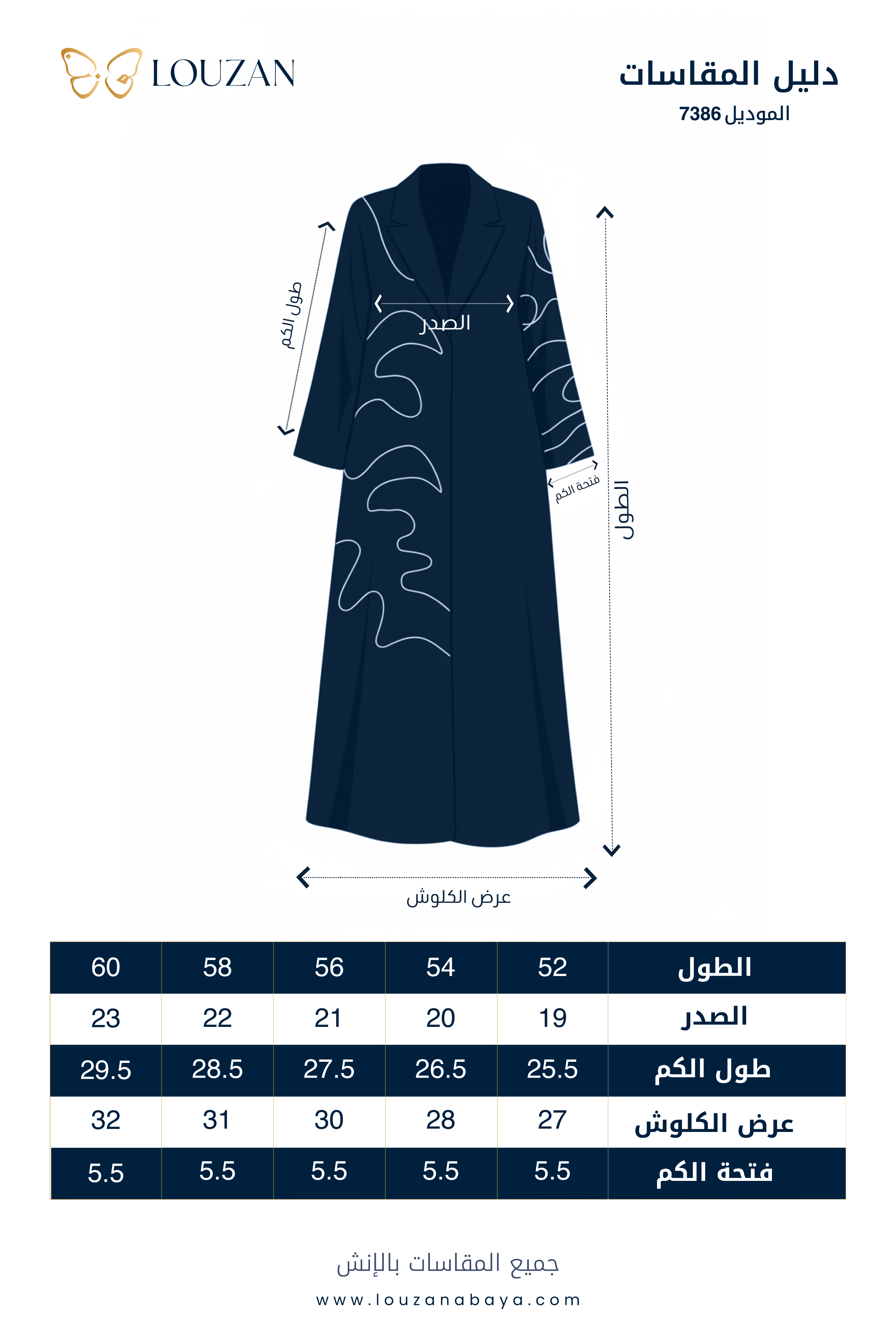 وصف المنتج : عباية بليزر سماوية بقماش اللينن ، بياقتها الرسمية وبوجود كتافات على الاكتاف كما طرزت بتطريز من الخيوط باللون الازرق بأنامل منمقة بالفخامة تحكي أسلوب معاصر ينبض بالجمال ..