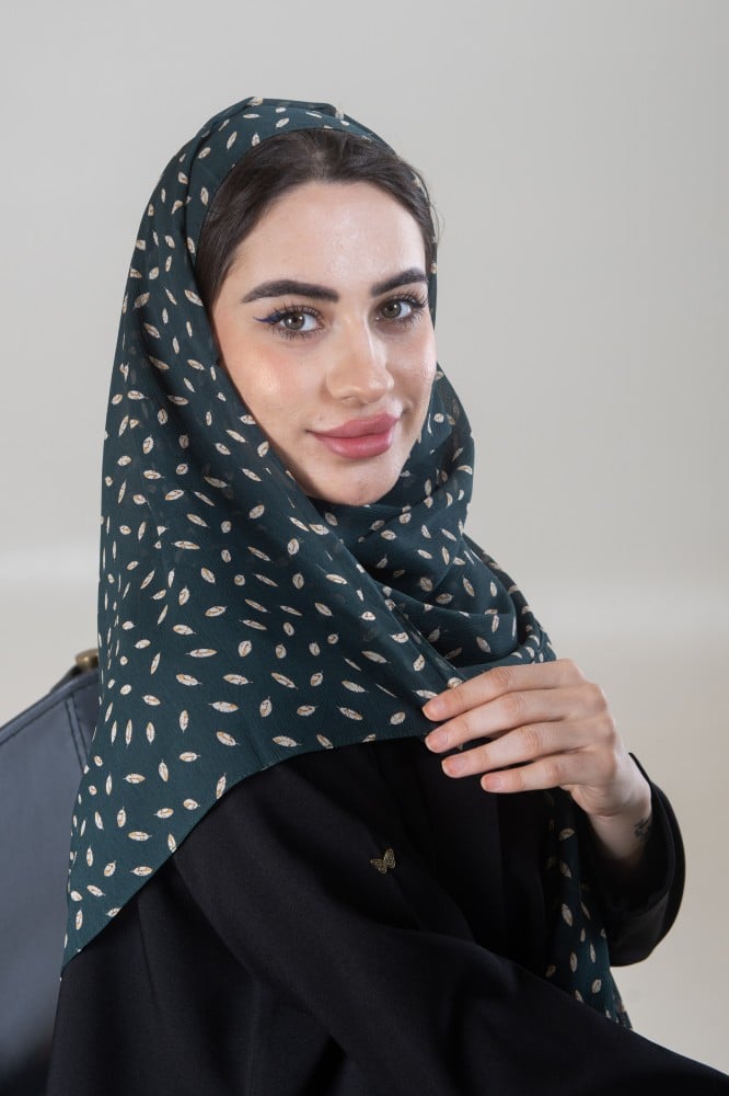 طرحة شيفون باللون الاخضر مشجرة - خفيفة ومناسبه للصيف ..