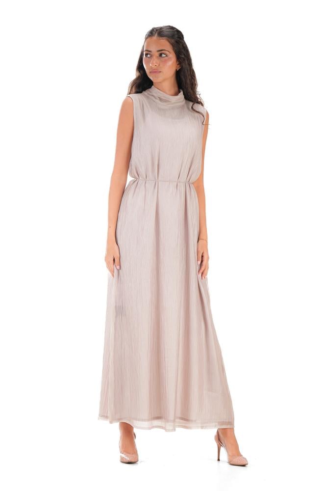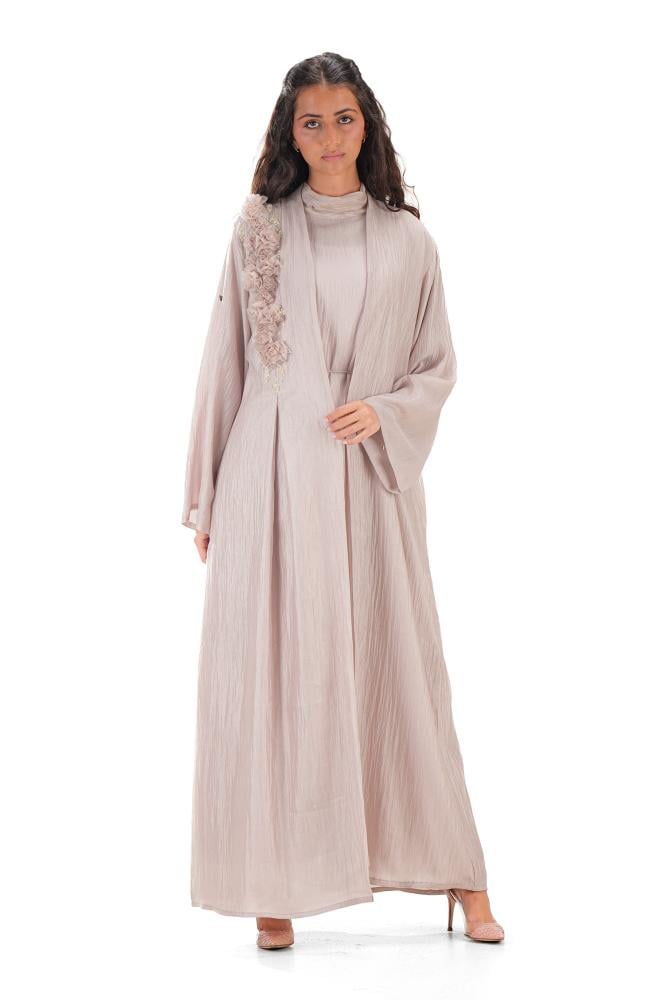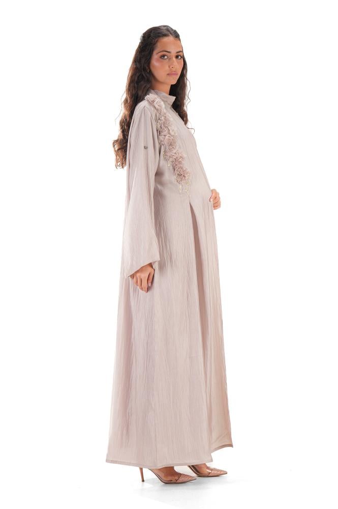 عباية بيج شيفون مع فستان بتطريز مميز - Rosen