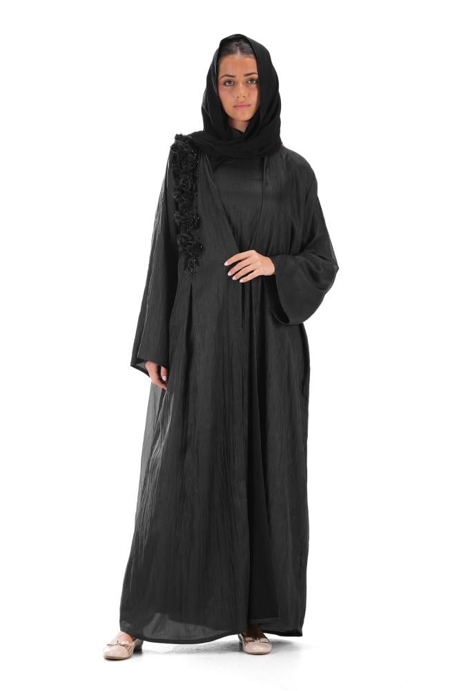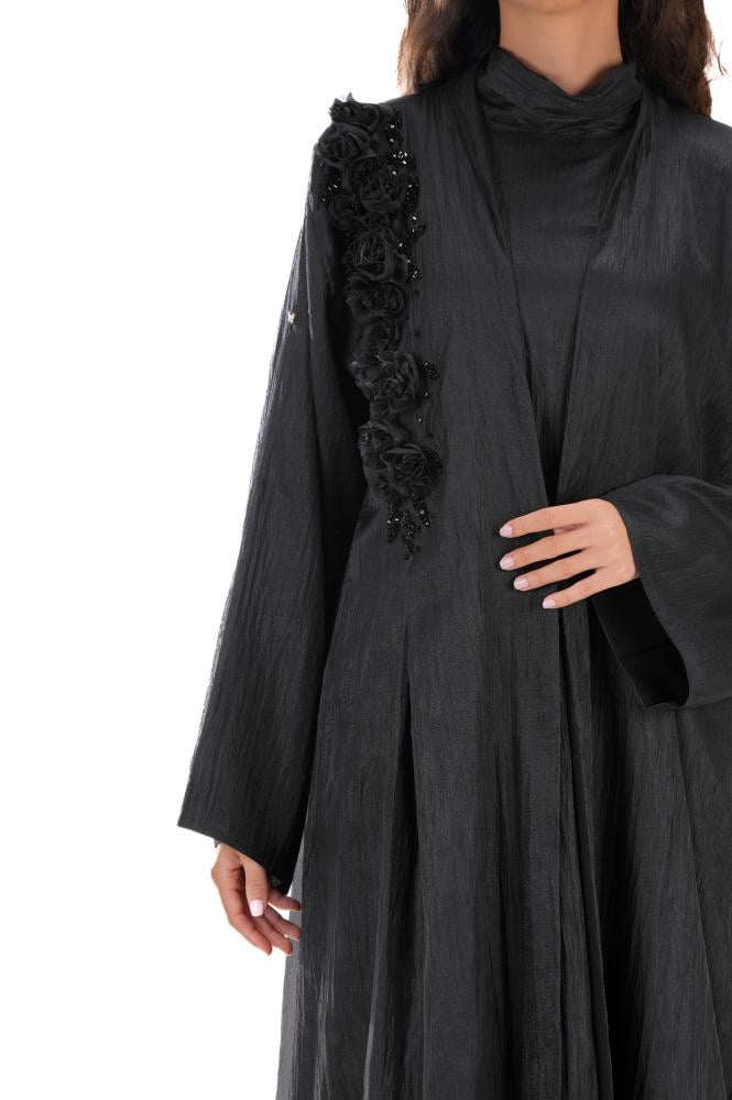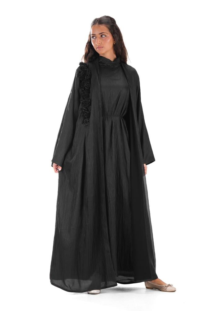وصف المنتج: عباية سوداء مع فستان بقماش الشيفون الصيفي الذي يمتاز بخفته ، تمتاز العباية من الامام بتطريز يدوي مميز وفخم على شكل ورد بحيث يحتفظ بالأناقة في جميع الأوقات ، ويأتي معها فستان كت مع حزام قابل للأزالة والتركيب ، عباية تجمع بين الأناقة و الفخامة وتجعلها قطعة فاخرة وفريدة للمناسبات الخاصة والأحداث الرسمية ..