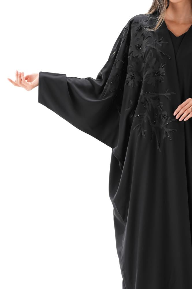 هذا التصميم يجمع بين الأناقة و الفخامة ويجعل العباية قطعة فاخرة وفريدة للمناسبات الخاصة والأحداث الرسمية ..