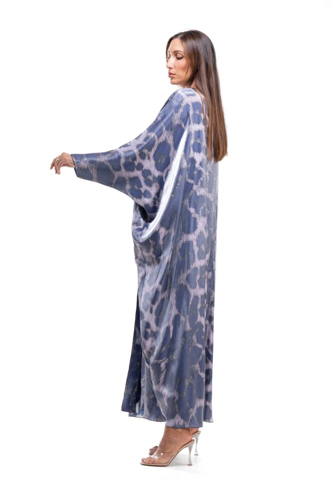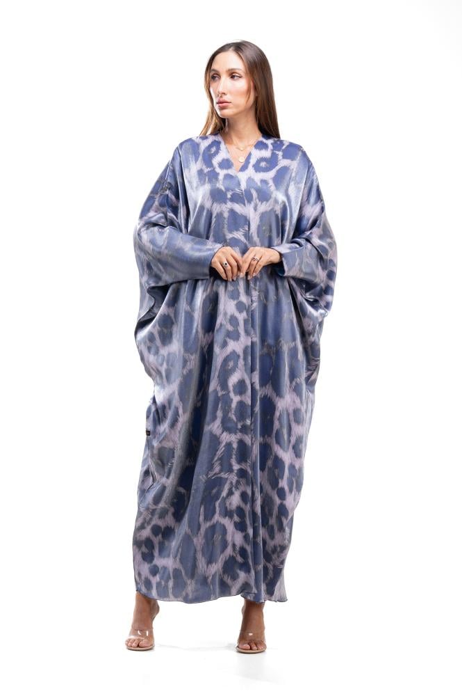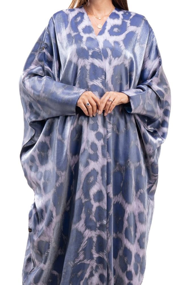 Product Description: A soft and luxurious abaya in silk organza fabric, from Alia Khalil's (Your Shades) collection, inspired by your unique personality. Each abaya represents a different aspect of your personality. A strong and courageous personality. This abaya embodies the spirit of a strong woman who is unafraid to stand out and embrace challenges. Its design is inspired by leopard print, a symbol of boldness and confidence, and is adorned with a royal purple color, historically associated with strength and prestige. This piece reflects an unbreakable personality, moving forward steadily, and imposing its presence with elegance that is unlike any other.