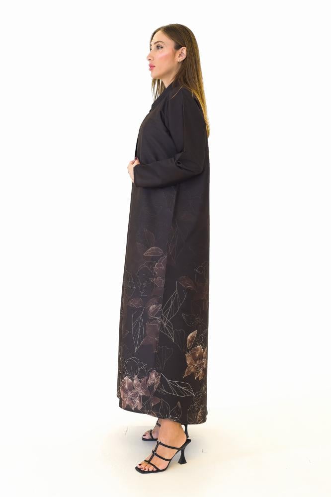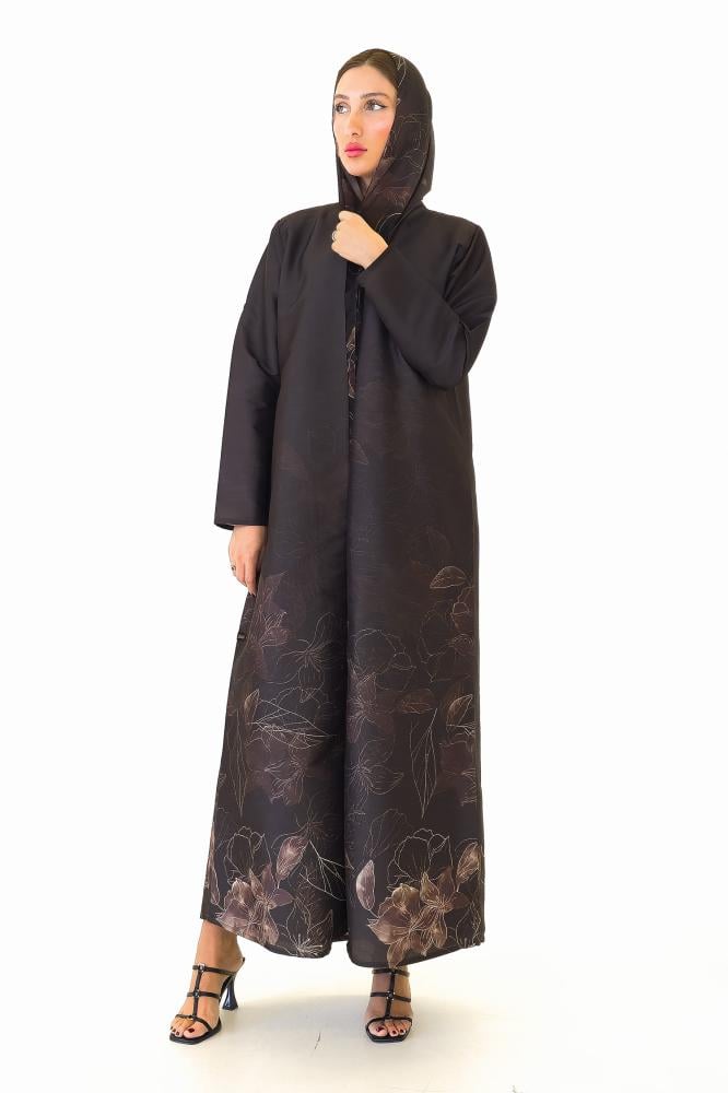 This abaya represents a modern style with an artistic touch inspired by nature, making it an ideal choice for lovers of bold, distinctive designs.