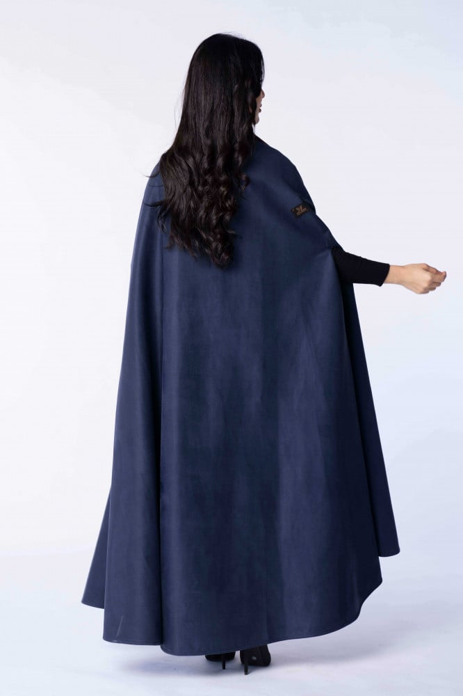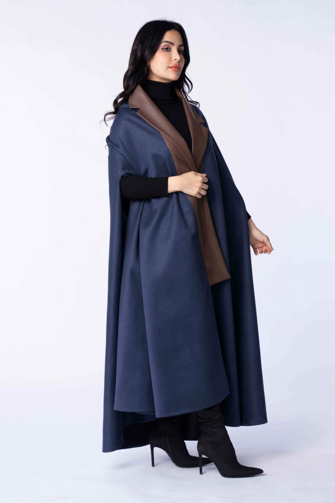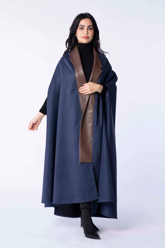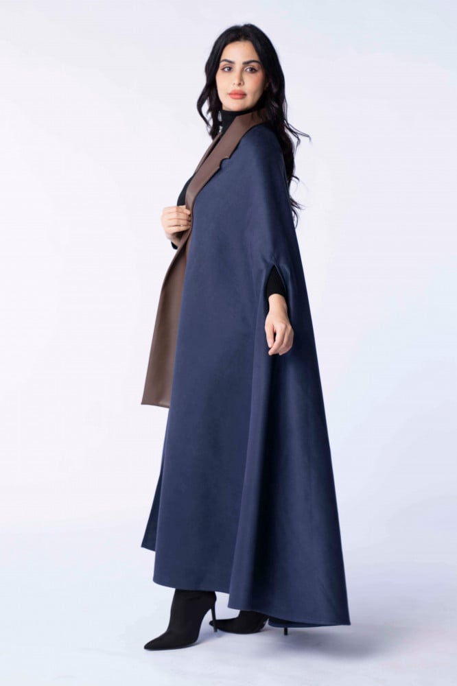 Product Description: A suede winter abaya with a cut (robe - cape), designed in a modern way by adding leather to it, which gave it a sophisticated winter look..