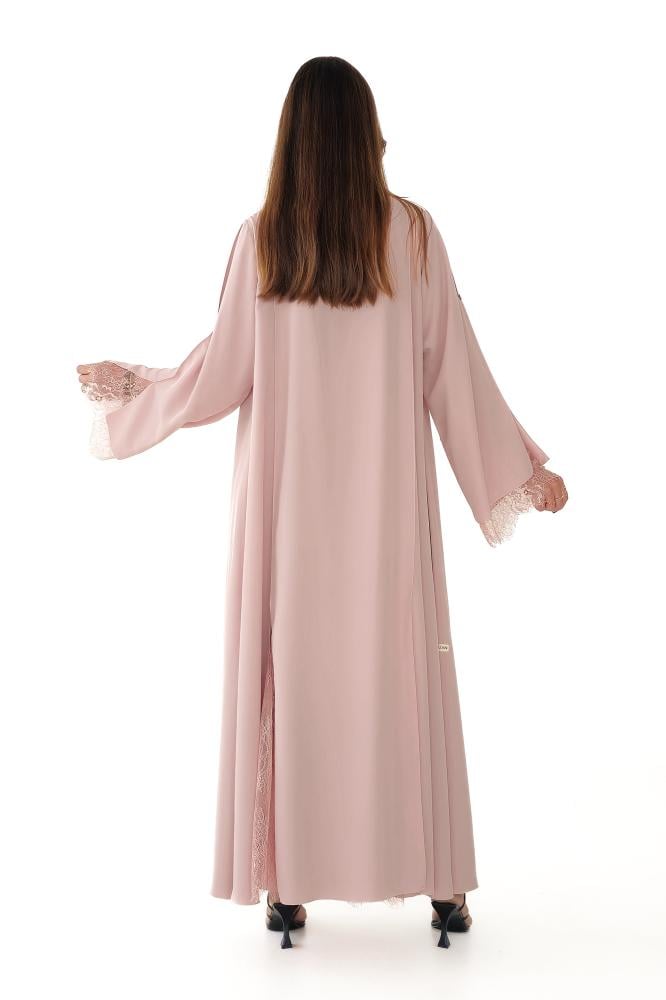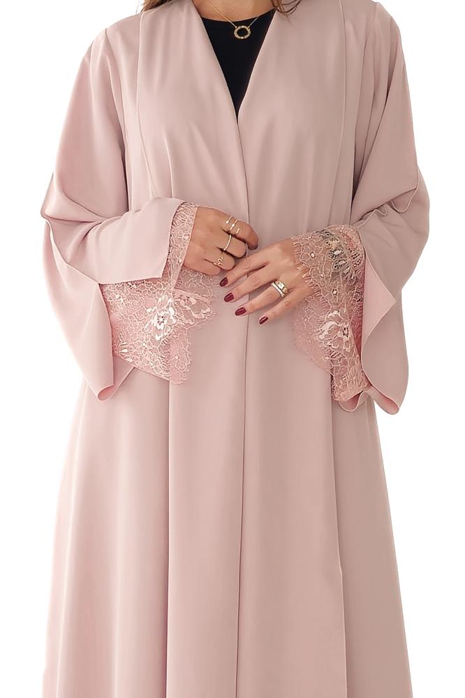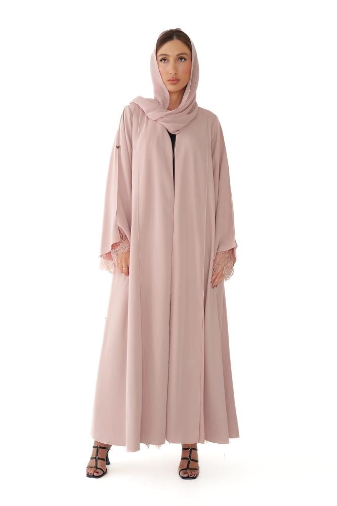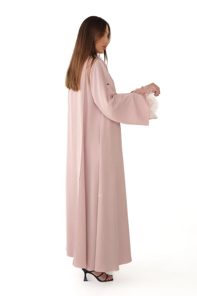 وصف المنتج: عباية وردية فاخرة بقصة كلوش أنيقة اضافت لمسة من الانسيابية ، تتميّز بلمسات أنثوية راقية تبرز في بطانة الدانتيل الفاخرة والظاهرة على أطراف الأكمام وأسفل العباية ، كما صممت بفتحات أنيقة تضيف مرونة في الحركة دون المساس بجمال التصميم وأناقة في التفاصيل لتكون خيارك المثالي للمناسبات الخاصة والإطلالات اليومية الراقية ..